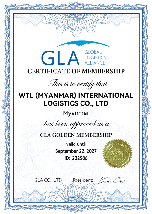 Your location:Home > News > Welcome! GLA Golden Membership Renewal from Myanmar (Burma) ———— WTL (MYANMAR) INTERNATIONAL LOGISTICS CO., LTD
