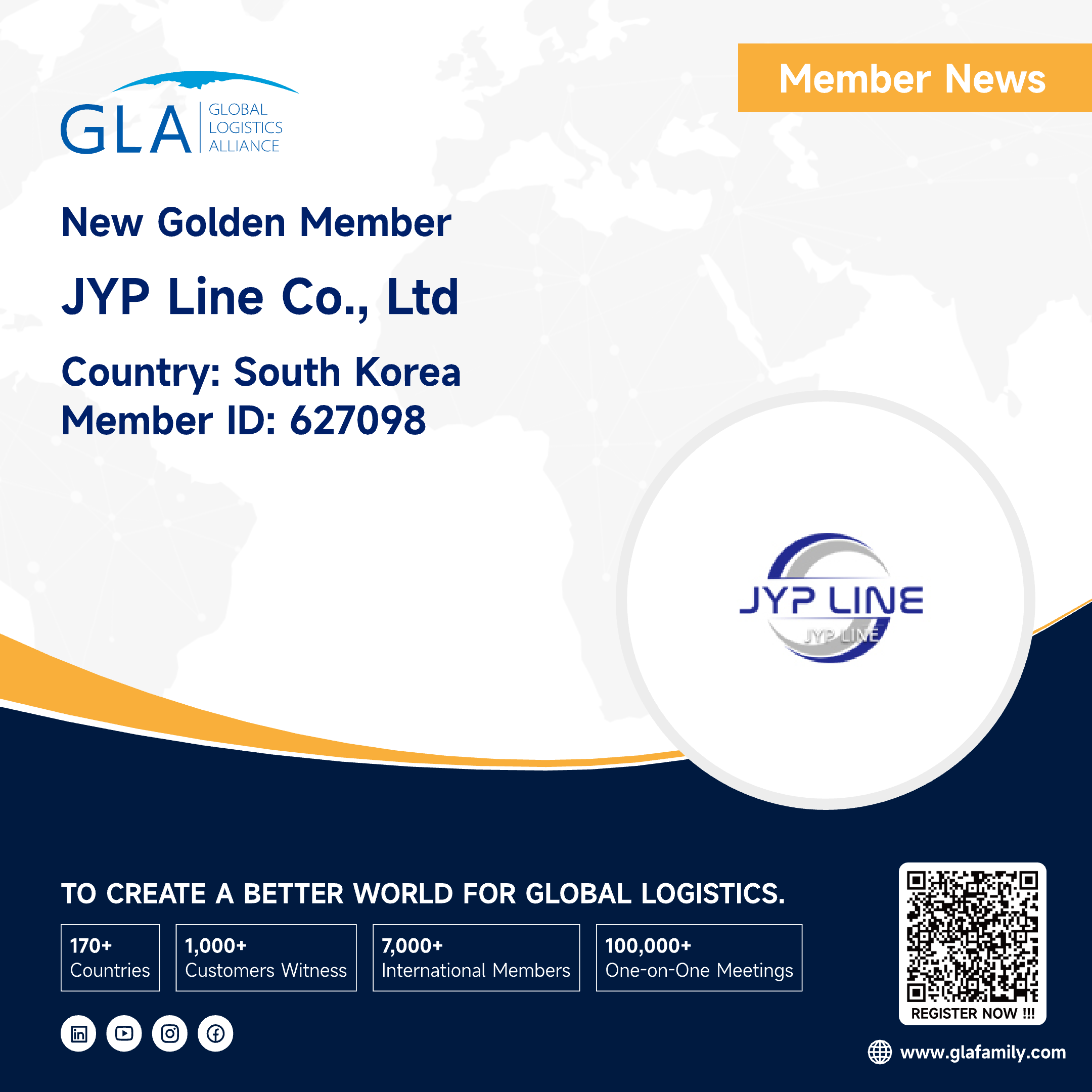 It is our great honor to announce that JYP LINE CO., LTD has joined GLA Family as a golden member from South Korea, If you need South Korea service, you can feel free to contact JY PARK.About JYP LINE CO., LTDJYP LINE CO., LTD. was established to provide sea & air transport services...